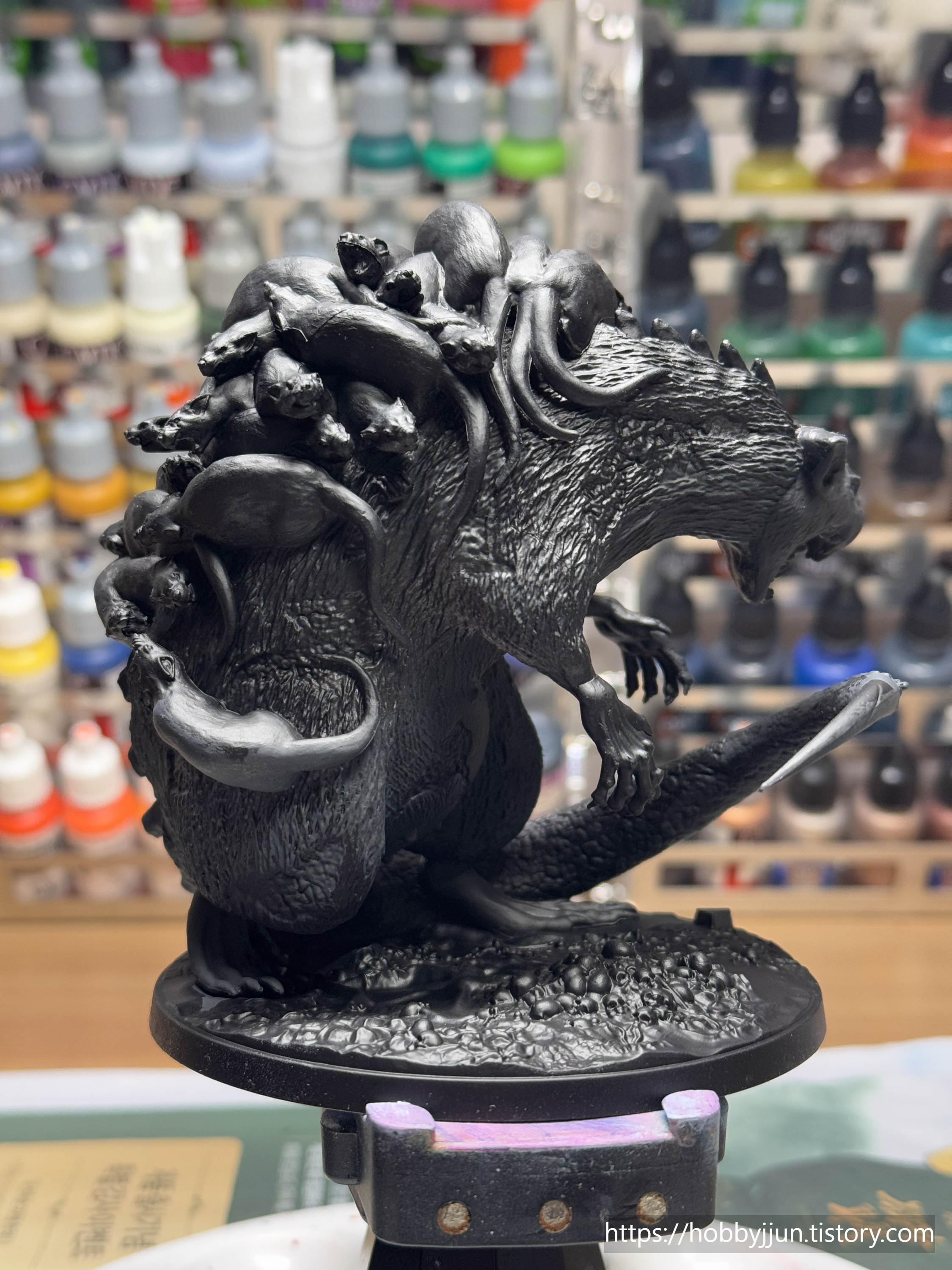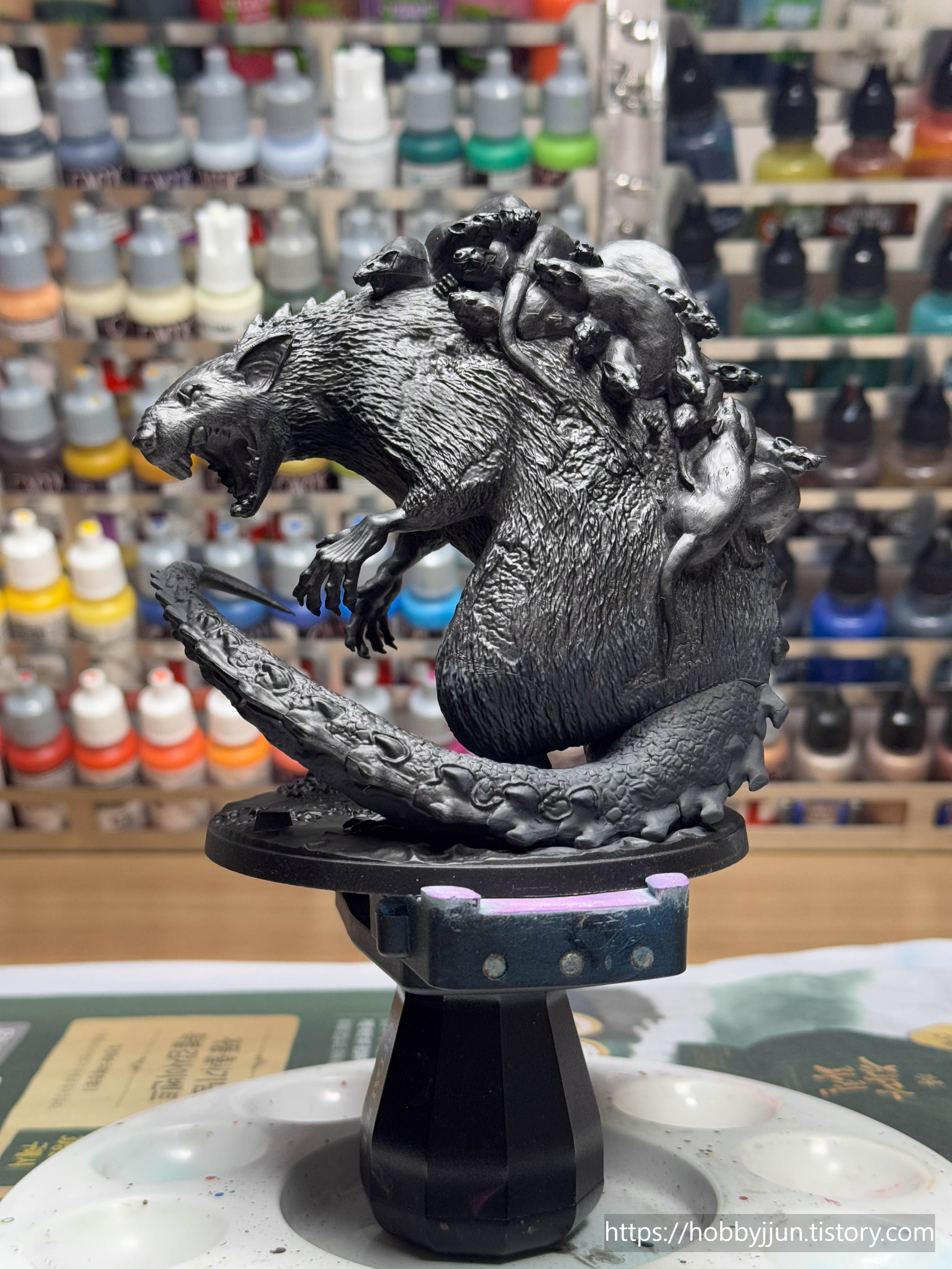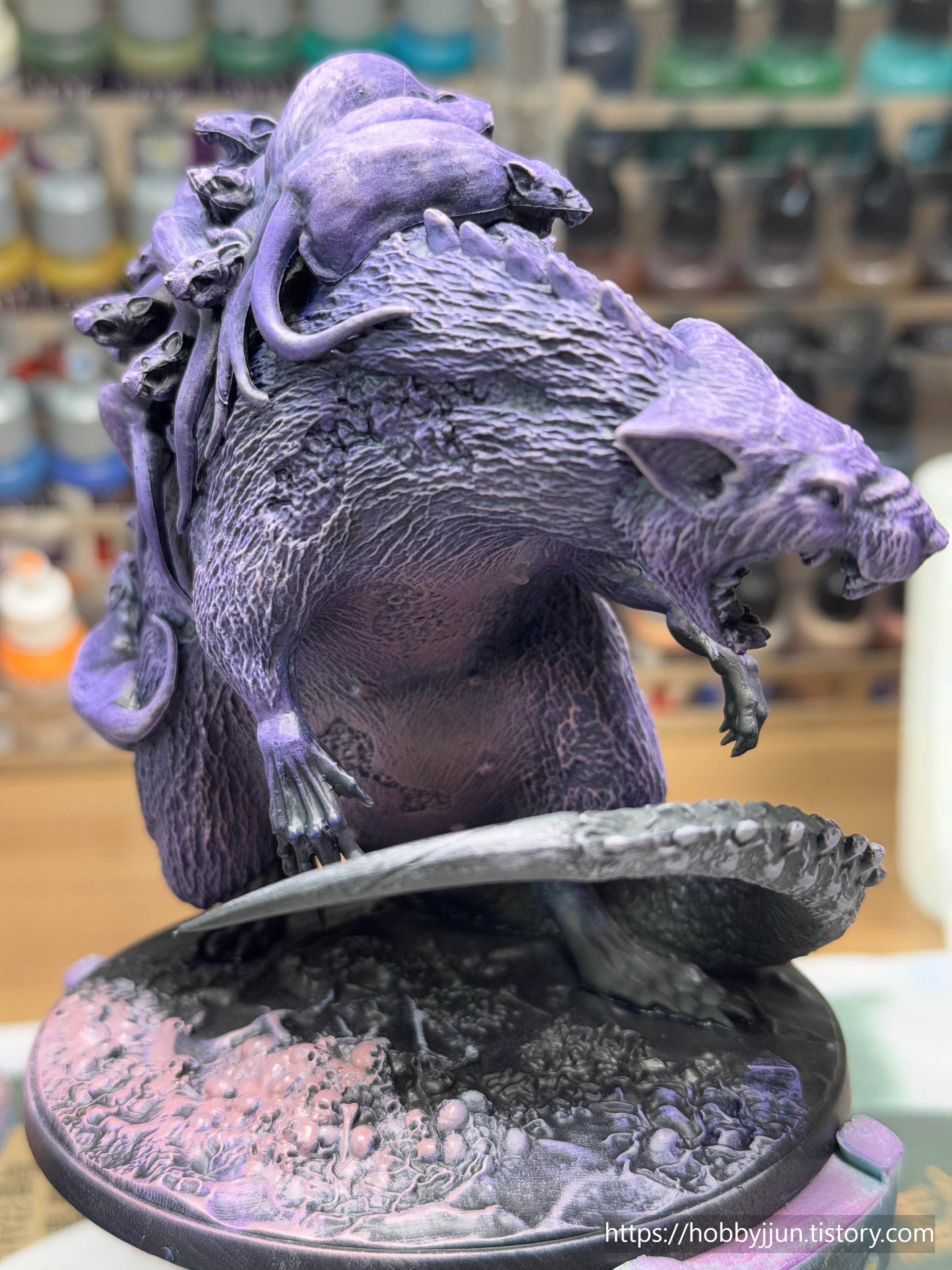 오쓰스원 1번 박스 보스 모델입니다. 새끼쥐들을 등에 업은 쥐 엄마(?) 컨셉의 모델입니다. 검은색 털로 칠할지 보라색 털로 칠할지 고민을 많이 했는데, 결과적으로는 보라색으로 칠했는데, 제