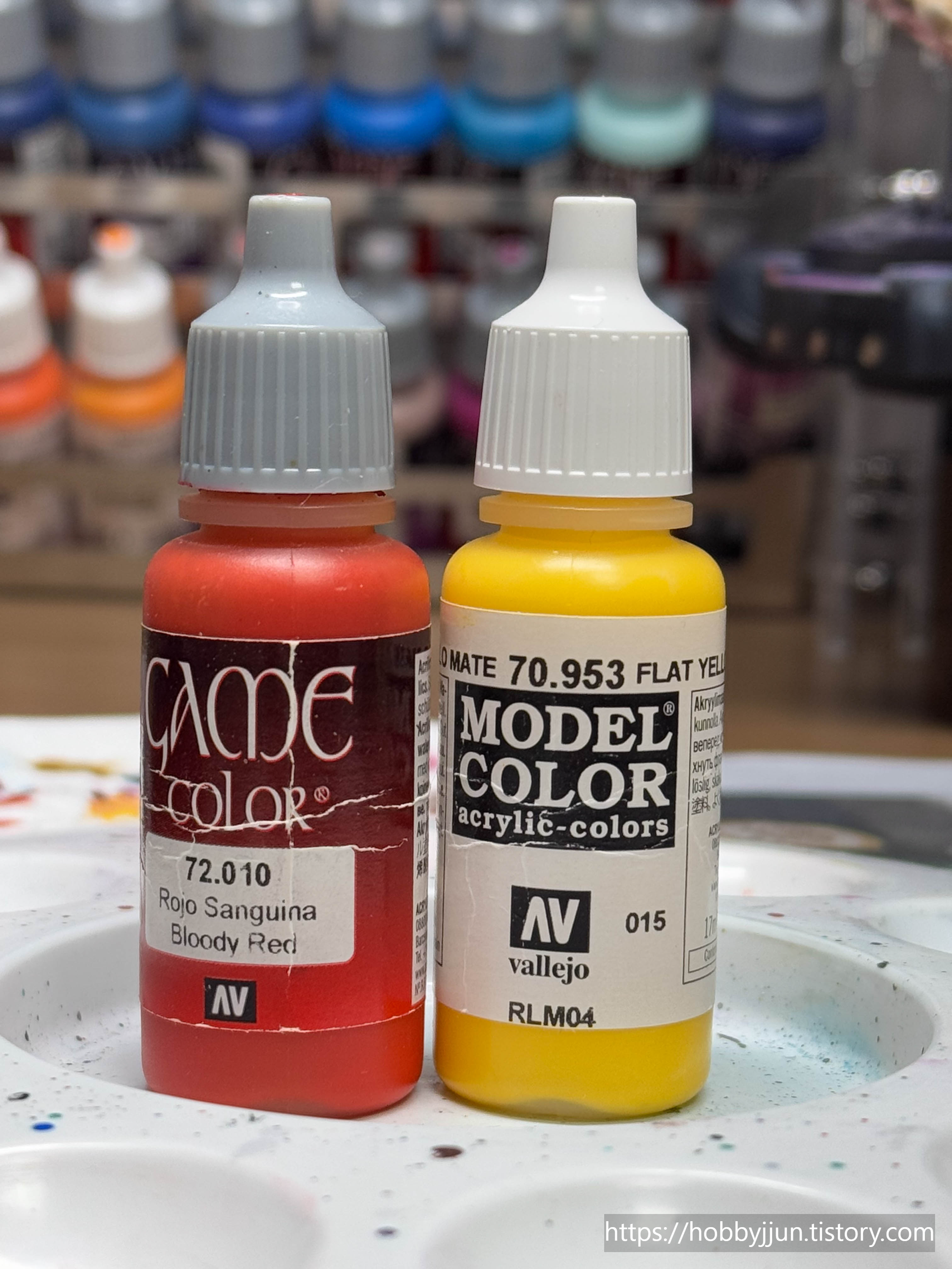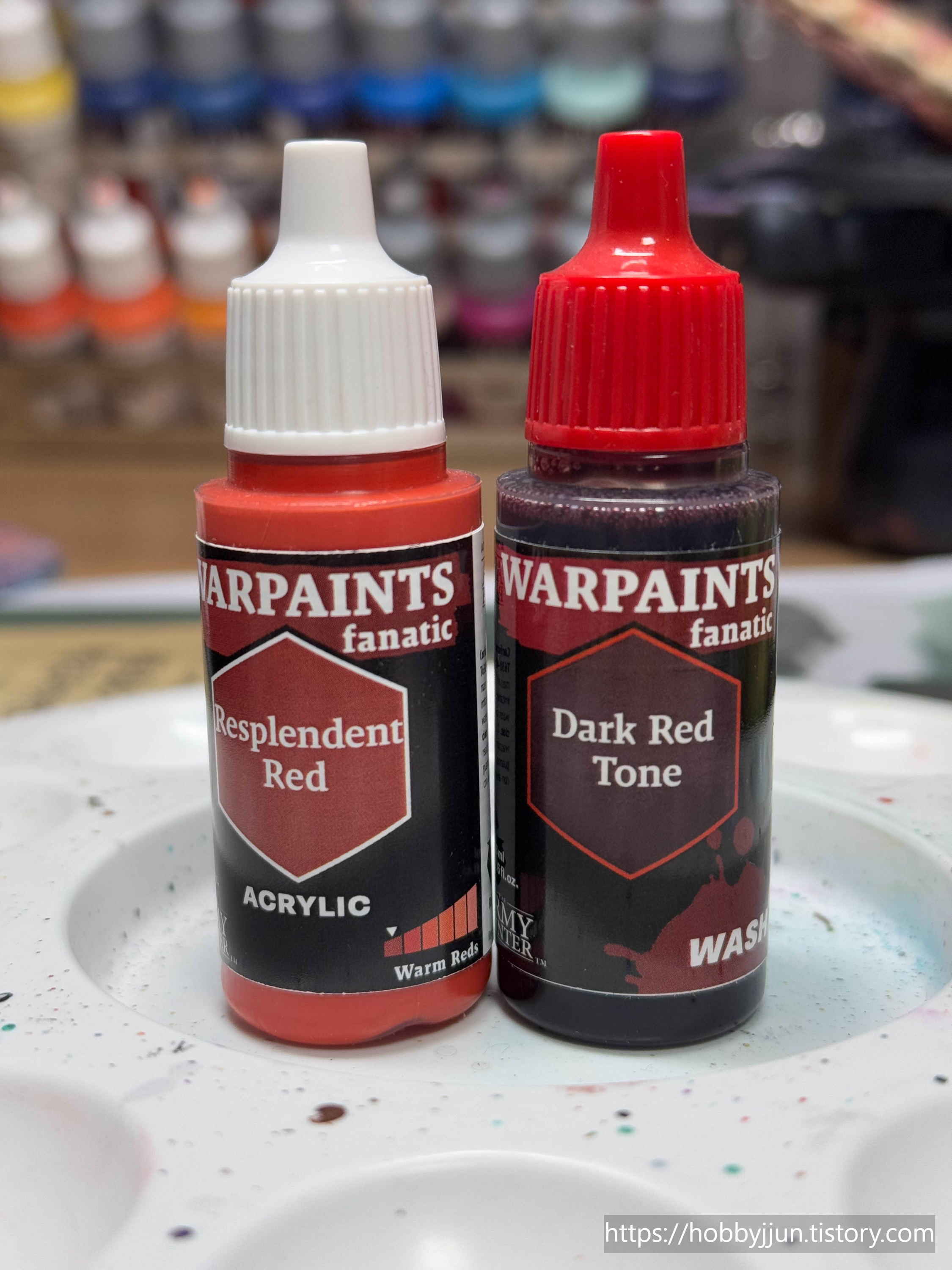 1:1 정도로 섞어줘야 시타델의 Carroburg Crimson과 비슷한 색감이 납니다.