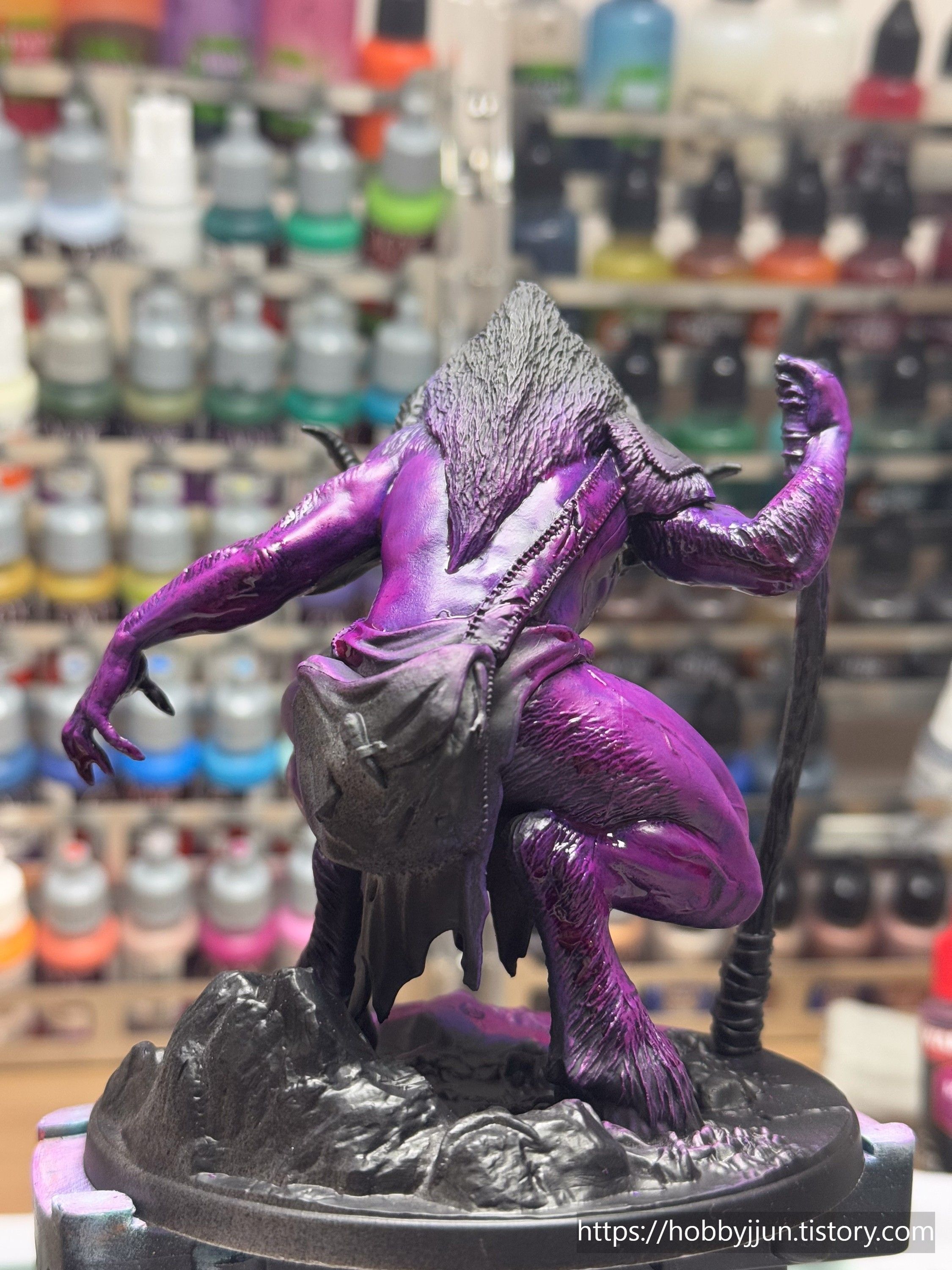 오쓰스원 2번 박스 보스 모델입니다. 꿈에서 나올 듯한 괴수를 표현하고 싶었는데 그럭저럭 느낌이 나는것 같네요. 지팡이에 사람을 메달고 있는 모습이 매우 인상적입니다 ㅎㅎ