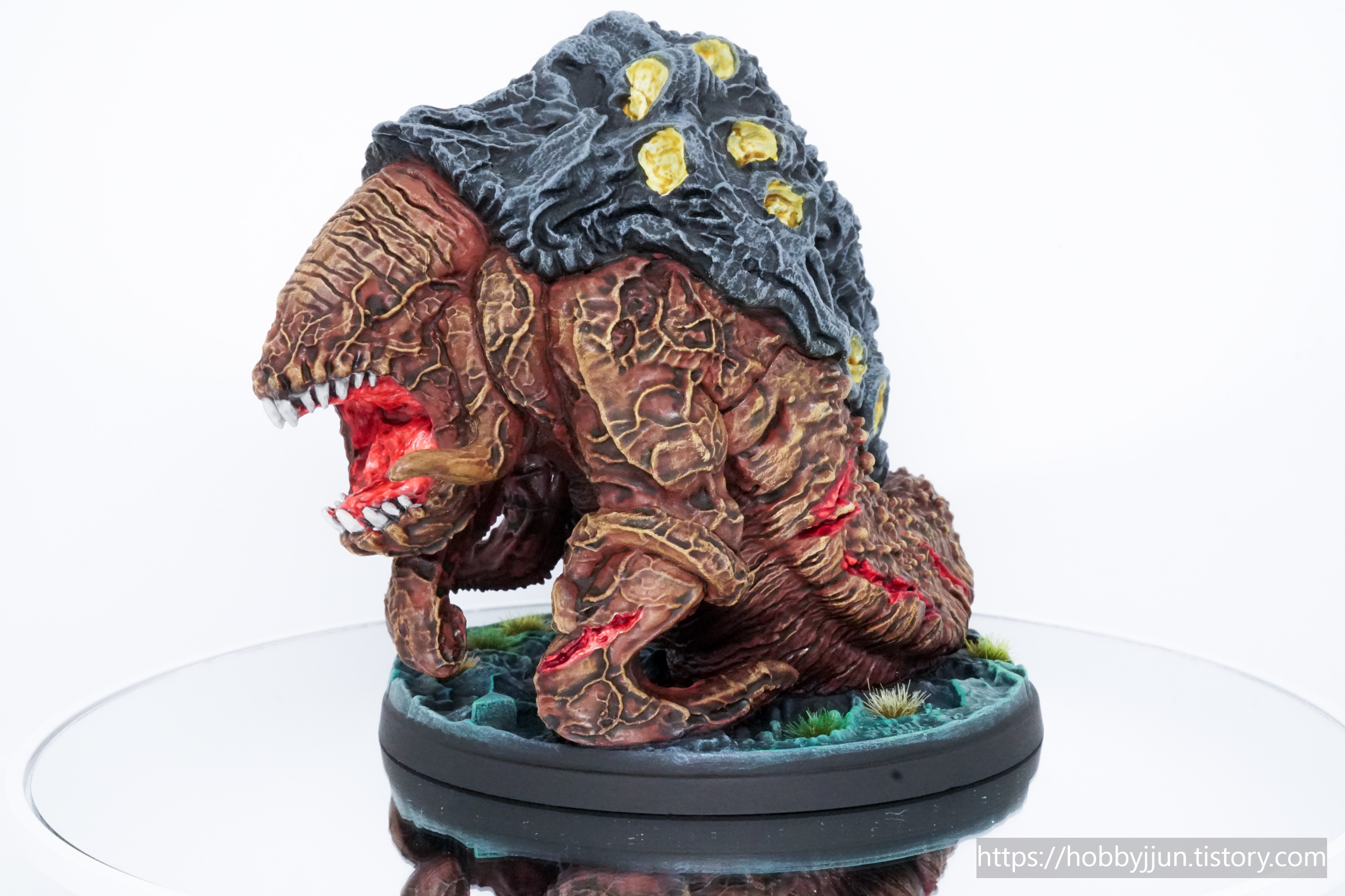 등껍질에서 고름이 흘러내리는 표현을 해주고 싶었는데, 단순히 콘트라스트를 한번 칠해주는 것만으로는 썩 만족스럽게 표현이 되지 않은 것 같네요.