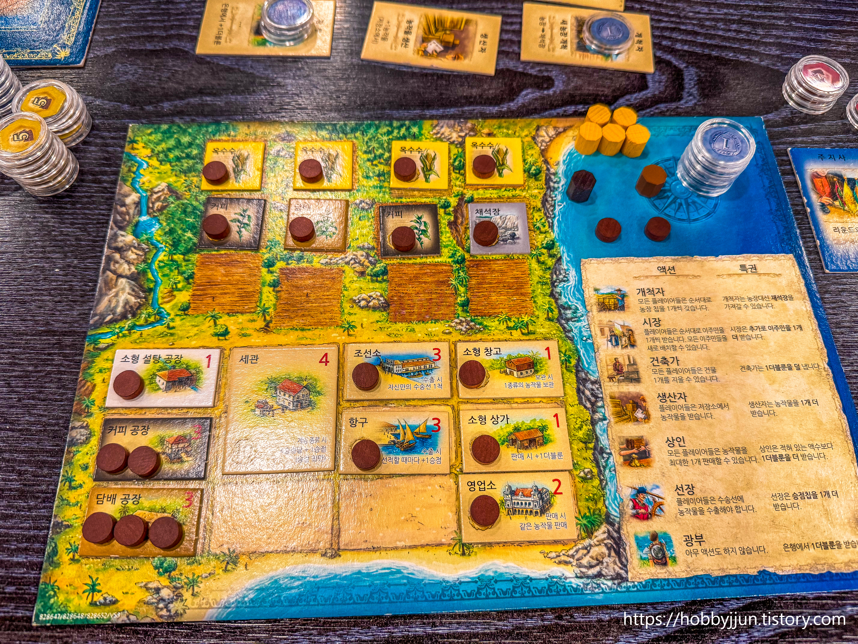 고전 명작인 푸에르토리코를 플레이 했네요. 아쉽게도 카페에 최근 나온 푸에르토리코 1897버전은 없고 구 버전이 있어서 구버전으로 플레이 했습니다.