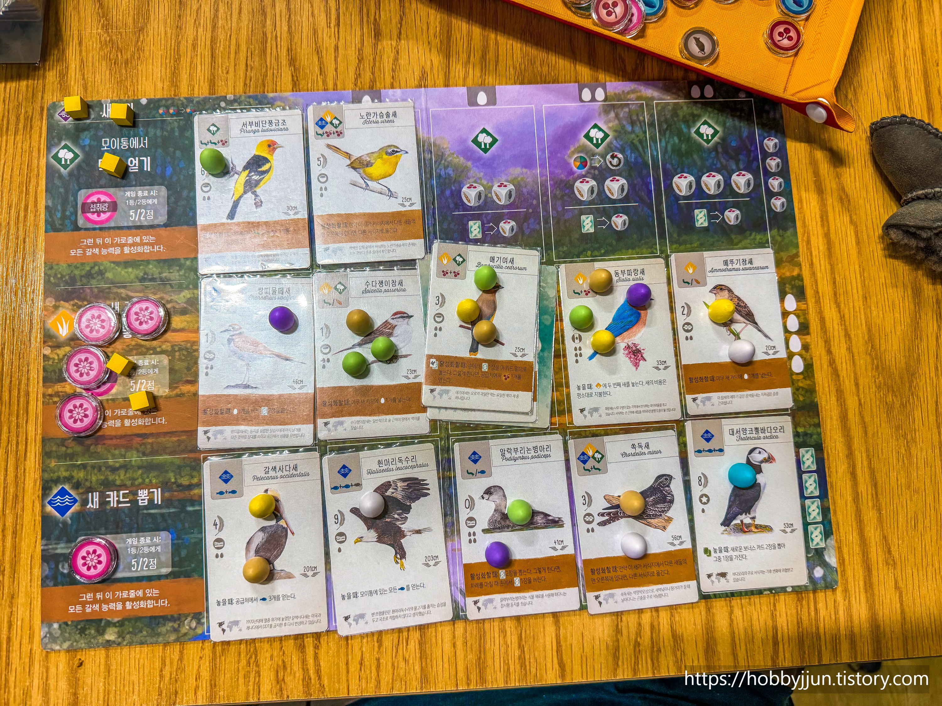 게임 종료시에 제 개인 보드판입니다. 4장씩 골고루 새를 놓았네요.