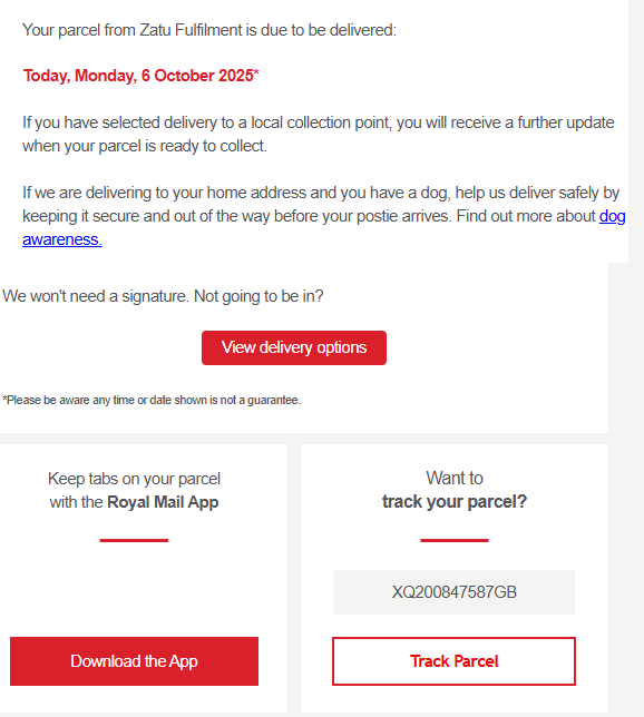 영국내 배송이 시작되면 이메일로 트래킹 번호를 같이 보내줍니다.