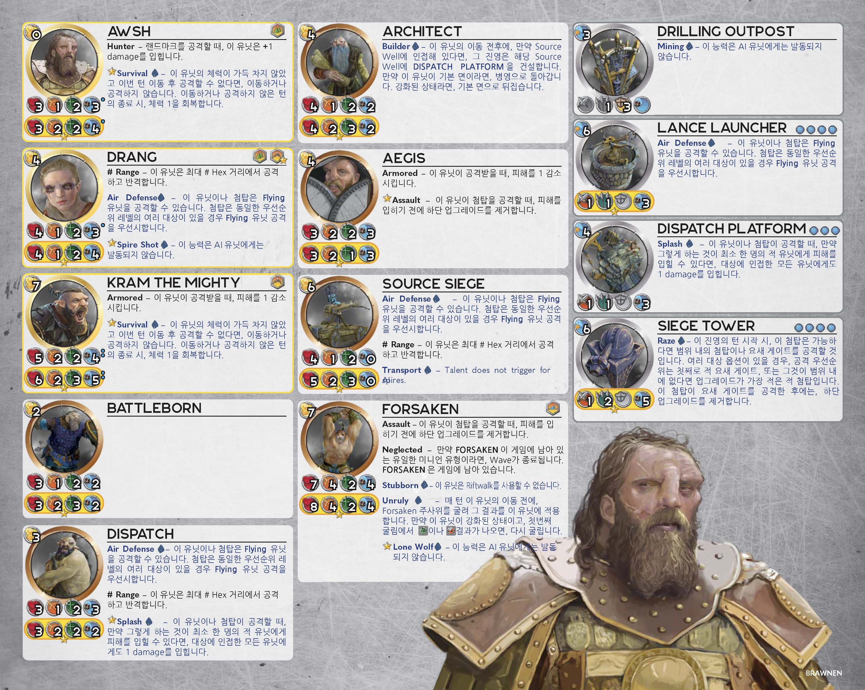 솔로 플레이에서 사용하는 팩션별 AI 레퍼런스 시트 한글 번역 자료 입니다.