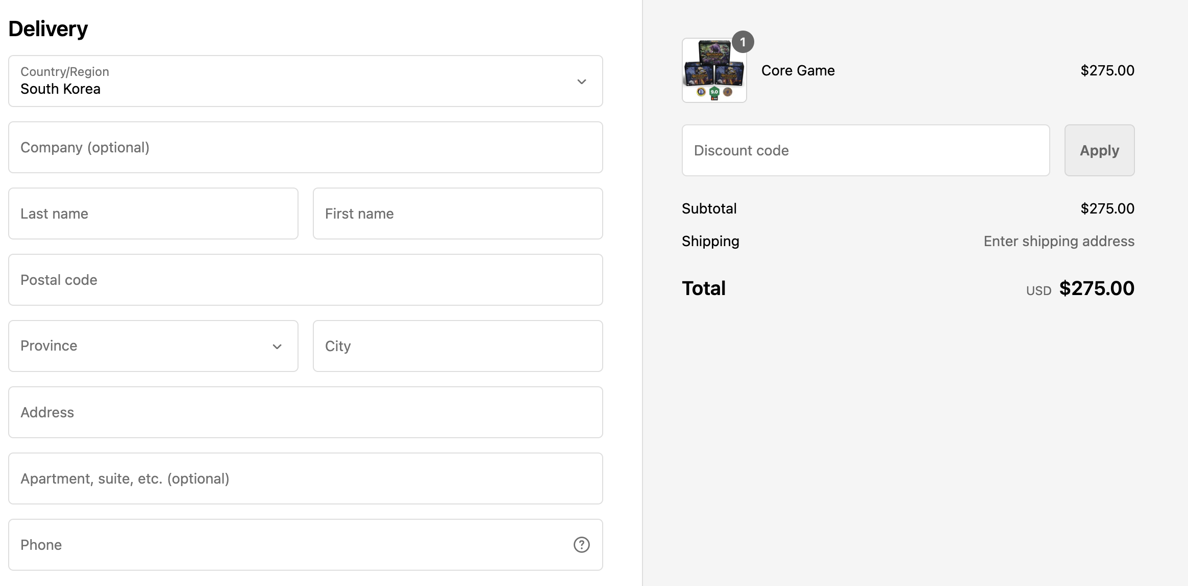배송 주소를 다 넣으면 물품 종류에 따라서 배송비가 책정되는데, Core Game은 직배송비가 $79로 책정되네요.