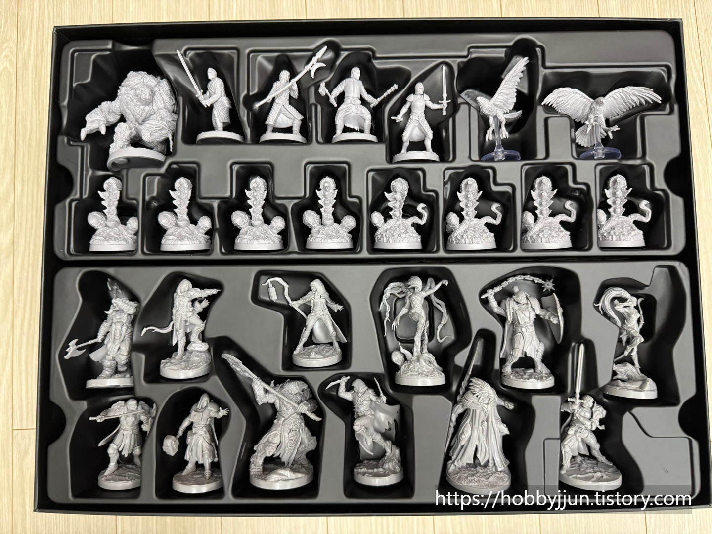 미니어처 트레이 밑에는 게임 판과 각종 토큰이 들어있습니다.