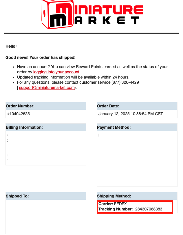 미니어처 마켓은 배송이 시작되면 트래킹 번호도 시스템에서 손쉽게 확인이 가능하기 때문에 매우 편리합니다!