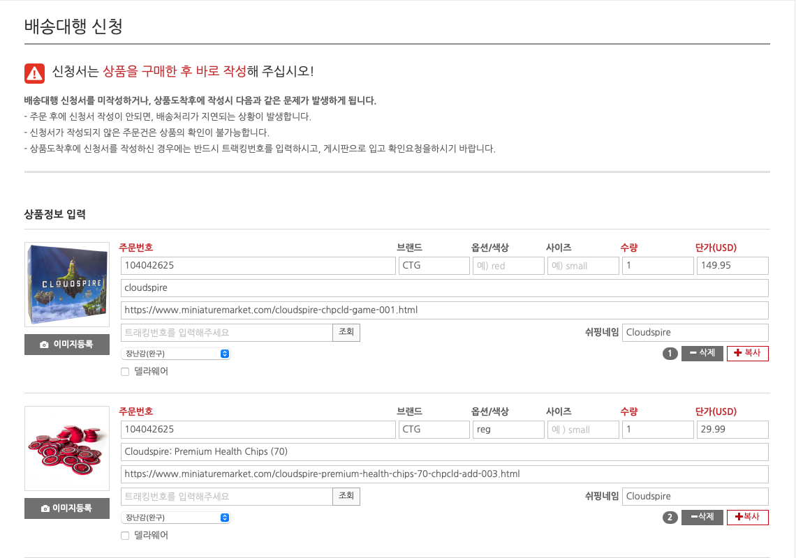 보드게임 미니어처 마켓 배송 대행을 해보자! - 클라우드스파이어 구매하기