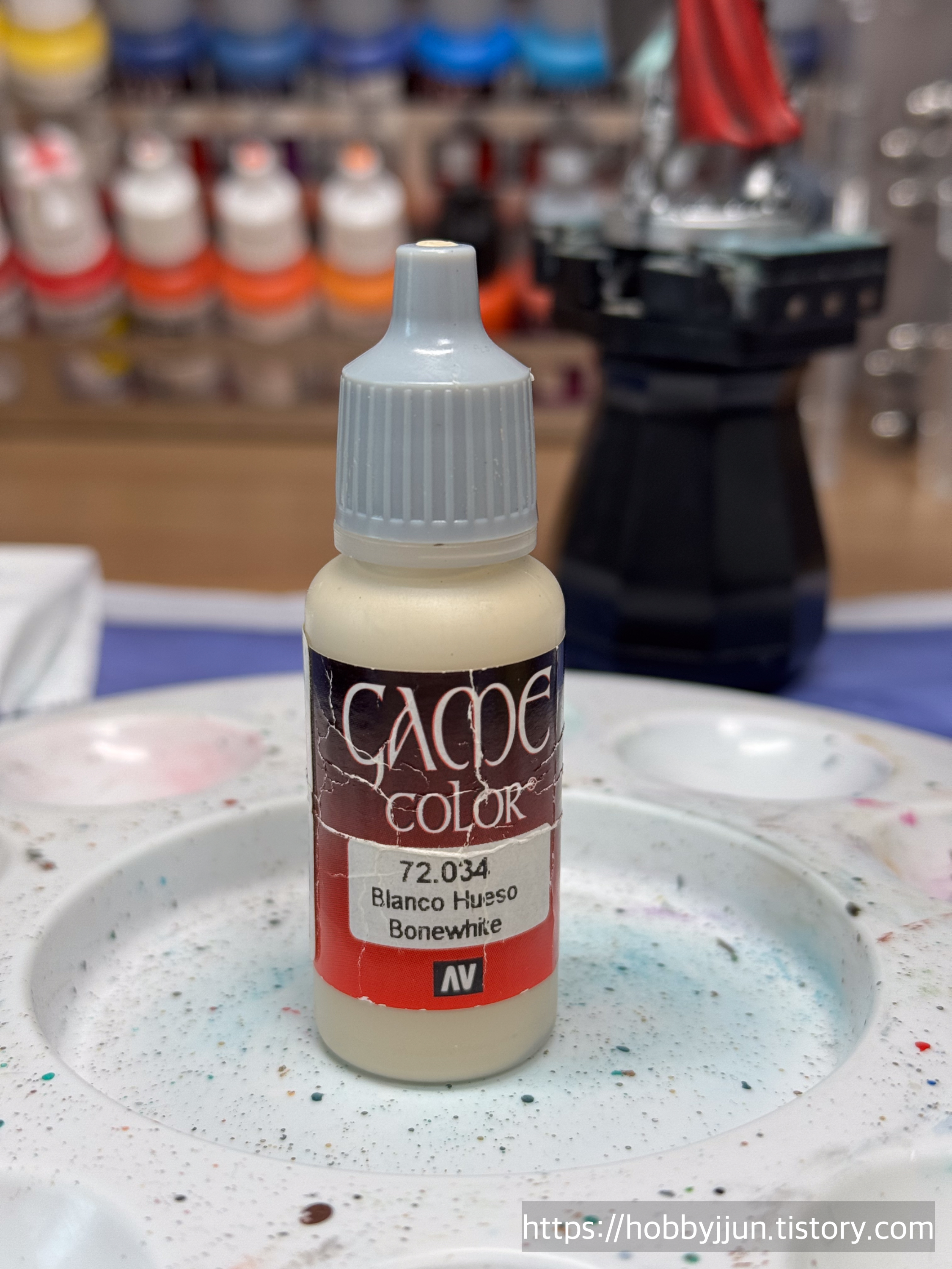 흰색으로 밑색을 깔았던 부분에 Bonewhite를 칠해줍니다. 이색은 흰색에도 너무 안올라가서 쓰기 싫은 색이예요 ㅜㅜ