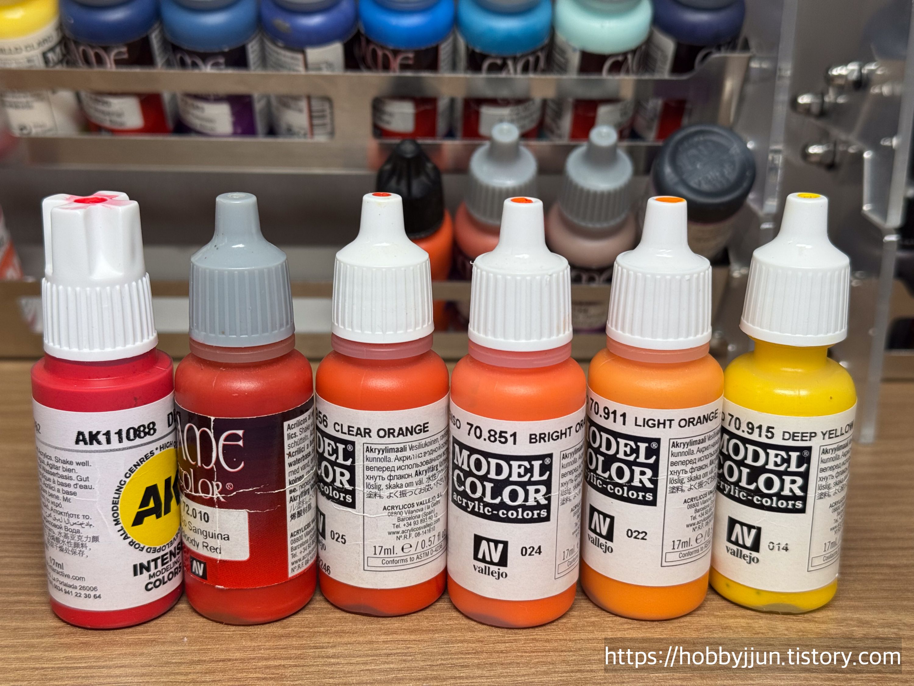 빨간색 계열 도료는 사다보니 비슷한 색들을 많이 모으게 됬는데,,, 색이 많으니 편하긴 하네요.